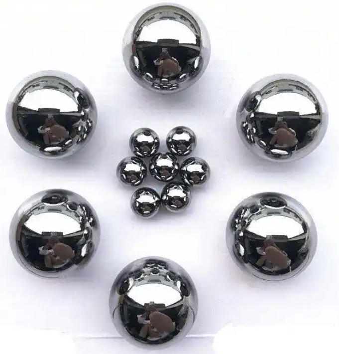 Wolfram StahlkugelMaterial Qualitéiten: YG6, YG8. Dëst Material gëtt hart Legierung genannt, déi héich Dicht, héich Häert, Verschleißbeständegkeet, Drockbeständegkeet, Rustverhënnerung a Korrosiounsbeständegkeet huet. Et kann Metallkugelen an Beräicher ersetzen, wou Metallkugelen net applizéiert kënne ginn, natierlech zu engem relativ héije Präis.